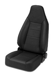 Bestop TrailMax II Sport Black Vinyl Single Jeep Seat provides the maximum in seating comfort, durability and safety. This jeep seat has premium vinyl fabric that maintains its shape in any temperature. It is mildew resistant and is a perfect color match to factory original. This seat has a built in headrest and an elastic mesh pocket for handy access storage.